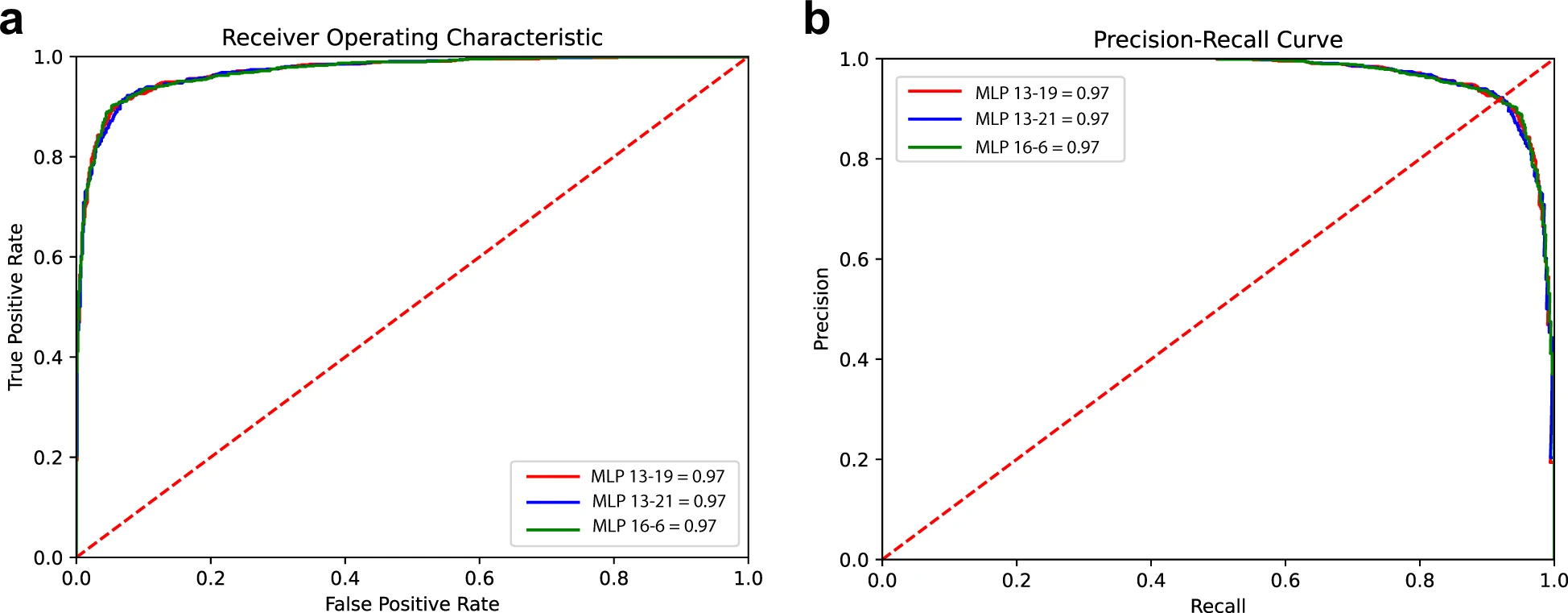 Herein, we implement and access machine learning architectures to ascertain models that differentiate healthy from apoptotic cells using exclusively forward (FSC) and side (SSC) scatter flow cytometry information. To generate training data, colorectal cancer HCT116 cells were subjected to miR-34a treatment and then classified using a conventional Annexin V/propidium iodide (PI)-staining assay. The apoptotic cells were defined as Annexin V-positive cells, which include early- and late-apoptotic cells, necrotic cells, as well as other dying or dead cells. In addition to fluorescent signal, we collected cell size and granularity information from the FSC and SSC parameters. Both parameters are subdivided into area, height, and width, thus providing a total of six numerical features that informed and trained our models. A collection of logistical regression, random forest, k-nearest neighbor, multilayer perceptron, and support vector machine were trained and tested for classification performance in predicting cell states using only the six aforementioned numerical features. Out of 1,046 candidate models, a multilayer perceptron was chosen with 0.91 live precision, 0.93 live recall, 0.92 live f-value and 0.97 live area under the ROC curve when applied on standardized data. We discuss and highlight differences in classifier performance and compare the results to the standard practice of forward and side scatter gating, typically performed to select cells based on size and/or complexity. We demonstrate that our model, a ready-to-use module for any flow cytometry-based analysis, can provide automated, reliable, and stain-free classification of healthy and apoptotic cells using exclusively size and granularity information.    download