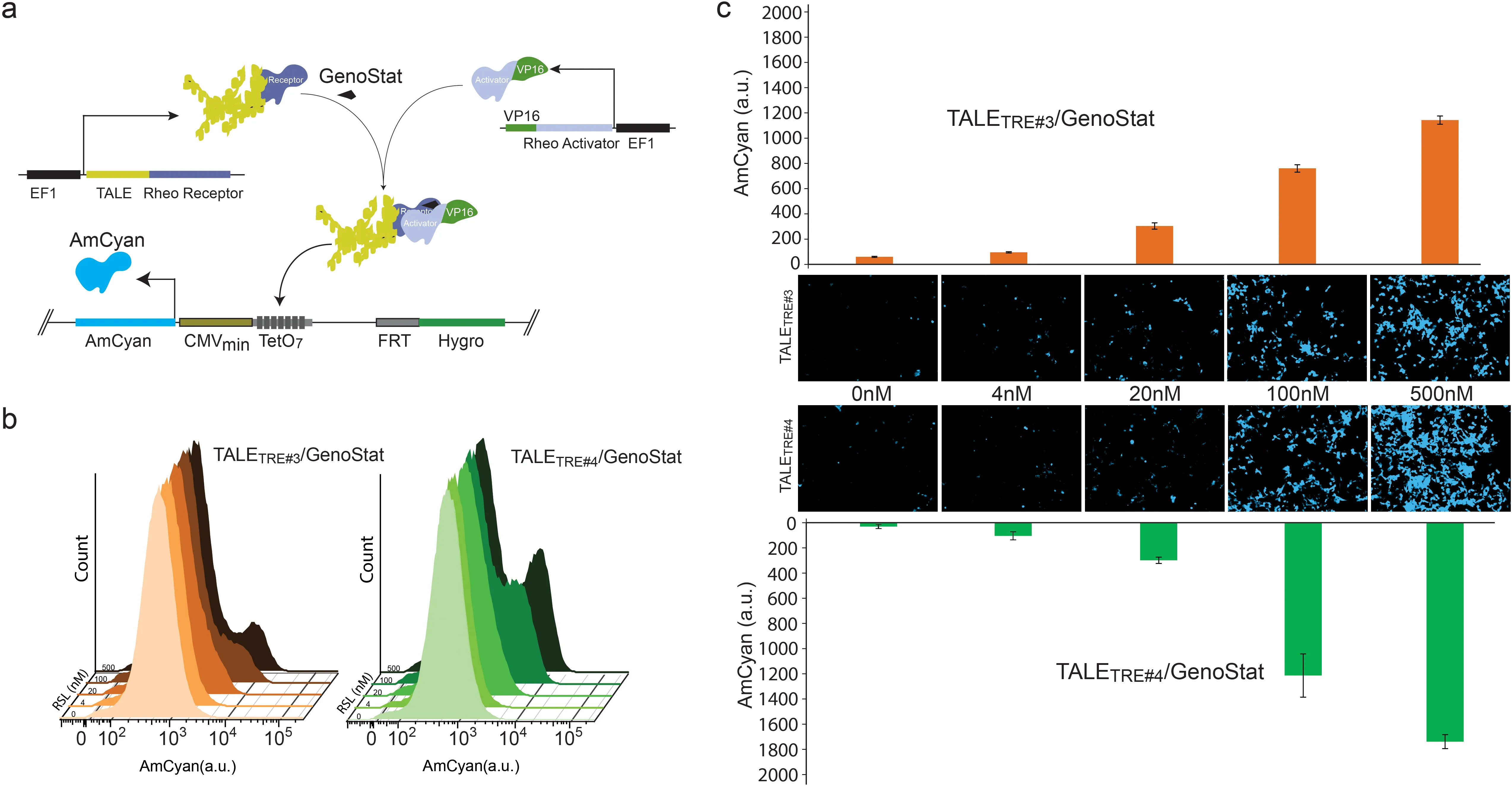 The ability to conditionally rewire pathways in human cells holds great therapeutic potential. Transcription activator-like effectors (TALEs) are a class of naturally occurring specific DNA binding proteins that can be used to introduce targeted genome modifications or control gene expression. Here we present TALE hybrids engineered to respond to endogenous signals and capable of controlling transgenes by applying a predetermined and tunable action at the single-cell level. Specifically, we first demonstrate that combinations of TALEs can be used to modulate the expression of stably integrated genes in kidney cells. We then introduce a general purpose two-hybrid approach that can be customized to regulate the function of any TALE either using effector molecules or a heterodimerization reaction. Finally, we demonstrate the successful interface of TALEs to specific endogenous signals, namely hypoxia signaling and microRNAs, essentially closing the loop between cellular information and chromosomal transgene expression.   download